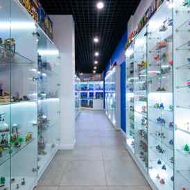 Музей расположился на территории большого помещения, которое вмещает в себя несколько залов с экспонатами в витринах, а также интерактивный макет «Город» площадью в 21 квадратный метр. В отдельных залах здесь представлены экспозиции по сериям Star Wars, Technic и Friends.